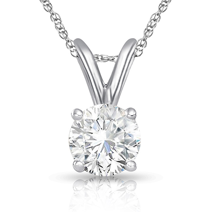 Hand set in New York City with 14k White Gold 4 Prong setting. The stone is of 0.18ctw & 3.50mm. All our diamonds are conflict free diamonds. Packaged into a fabulous box for your storing pleasure. Chains are included.