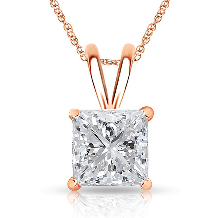 Hand set in New York City with 14k Rose Gold 4 Prong setting. The stone is of 0.18ctw & 2.95mm. All our diamonds are conflict free diamonds. Packaged into a fabulous box for your storing pleasure. Chains are included.
