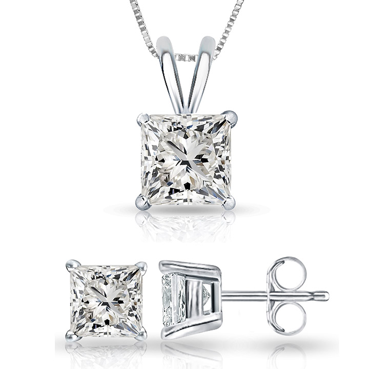 Hand set in New York City with 14k White Gold 4 Prong setting. For Stud (0.20ctw) each stone is of 0.10 ctw & 2.90mm and Pendant is 0.13ctw & 3.05mm. All our diamonds are conflict free diamonds. Packaged into a fabulous velvet package for your storing pleasure.