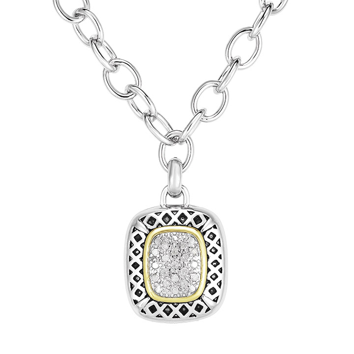 The cable link chain add a contemporary touch to this otherwise classic .15twt round diamond necklace. The 18" chain is secured with a toggle clasp.