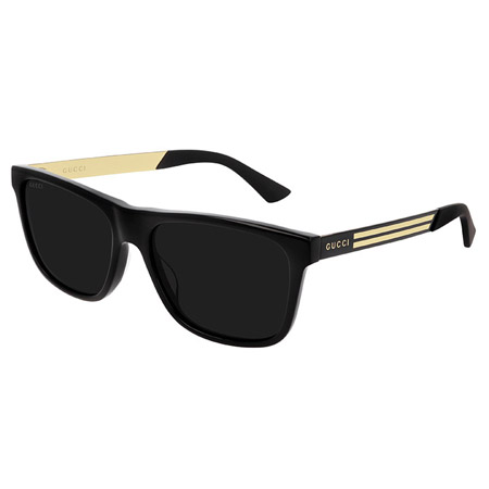 The gold stripes and Gucci lettering along the temples stand out against the black frames, which match almost any outfit. Includes hard protective case, satin pouch and cleaning cloth. 100% UV protection.