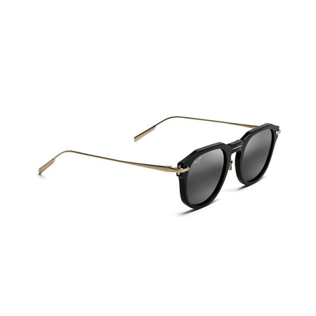 The titanium temples on these nostalgic shades are anchored to the injected front in baroque-style hinges reminiscent of a lighthouse tower. The keyhole bridge adds shimmering contrast to the unexpected structural reveal of the ceramic nose pads.
