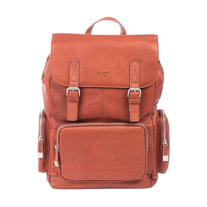 Features top grain leather, padded laptop computer compartment up to 16", buckle opening and closure, complete organizer panel, multiple outside front and side pockets, leather locker hanger and an adjustable shoulder strap. Measures 14" x 17" x 8".