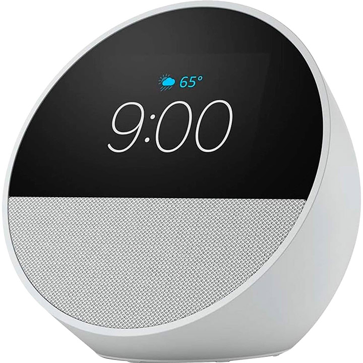 Echo Spot — A sleek smart alarm clock with Alexa and big vibrant sound. Ready to help you wake up wind down and so much more. See time weather and song titles at a glance control smart home devices and more. Personalize your display with your favorite clock face and fun colors.