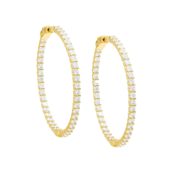 Make a stunning statement at your next gala with the Adina Eden cubic zirconia thin round hoop earrings. Crafted from high-quality brass and adorned with shimmering clear cubic zirconia stones, these 45mm earrings are the epitome of elegance and sophistication. The 14K gold plating adds a touch of opulence, making them the perfect accessory for upscale events.