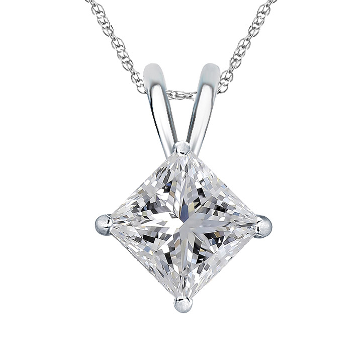 Adorn yourself with this solitaire pendant necklace from Parikhs that offers versatility for casual and formal occasions. Perfect for everyday wear, special events, or as an accessory for work attire, the princess-cut lab-grown 0.06-carat diamond pendant is set in 10k white gold. The diamond is color EF, clarity VS2.
