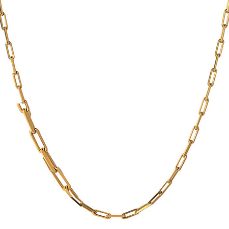 Simple but striking, the classic paperclip link chain offers a vintage look with a modern feel. The 18” paperclip link necklace has a lobster-claw clasp and a jump ring at 16” for versatility. It’s made of 14K yellow-gold vermeil, and the paperclips measure 8.4mm x 3mm.