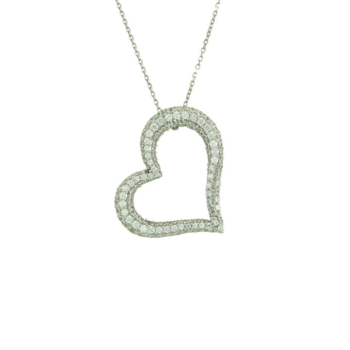 This “Triple Pavé” necklace from Antwerp is made of sterling silver with 110 round cubic zirconia totaling about 2.5 carats hand-set into the sweet heart pendant. This beautiful necklace is rhodium-plated to keep its shine and includes a sterling silver 16” chain.