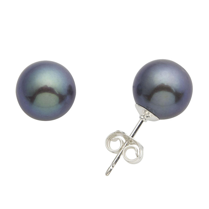 Make a classic style statement with these simple pearl stud earrings. The 9mm black cultured pearls are set in sterling silver and made for pierced ears.