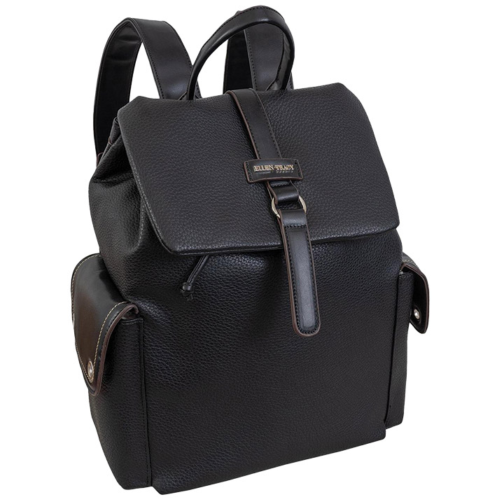 This 15” pebble-grain backpack from Ellen Tracy is a stylish way to carry all your essentials. It features gusset flap slip pockets, a cinched and snap closure, adjustable back straps, and an interior zippered and slip pockets for organized storage. Measures 15” x 15” x 6”.