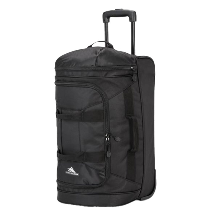 Constructed with water-resistant treated polyester, the High Sierra 22” wheeled carry-on has a locking pull handle and smooth rolling wheels for effortless mobility. The bag features multiple exterior grab handles for easy handling, a large U-shaped main opening for easy packing and access, and an exterior zippered pocket for additional storage.