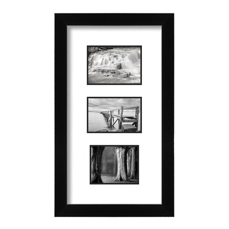 This Restful black and white artwork set is printed on archival matte paper that’s ready for framing, then is placed in two layers of matte board in colors designed to complement the art for a polished, protective look. Created by Hal Halli, these works of art all feature grayscale landscapes of river waterfalls, ocean piers, or forest trees. The art is mounted in a custom frame with a glass pane. Measures 13” x 21”.
