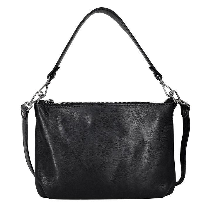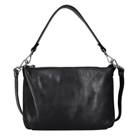 Made of 100% full-grain leather, the black Stevie crossbody/clutch from Latico Leathers features a detachable carry handle with 8” drop, adjustable crossbody strap with 21”-24” drop, a sleek design with top-zip entry, exterior cell phone pocket with magnetic strap, and interior organizer with four credit card slots and two slip pockets. Measures 8” x 1” x 11.25”.