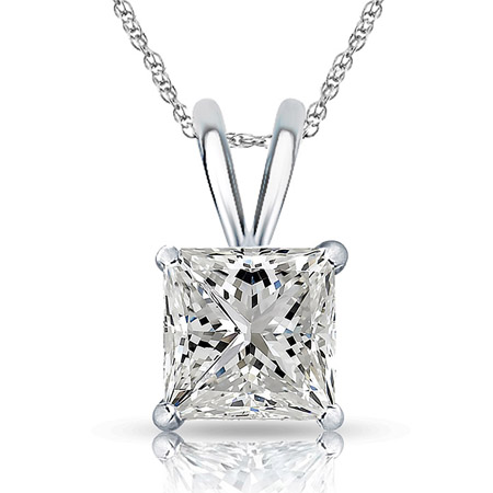 PARIKHS Princess cut Diamond Pendant Prestige Quality 14K White Gold 0.10 ct, IJ color, SI1 clarity