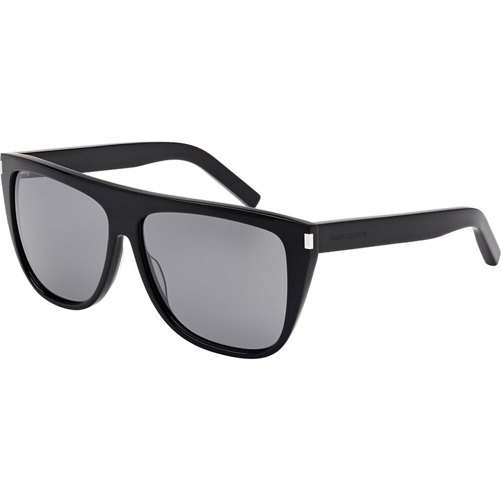 This oversized rectangular frame from Saint Laurent is a firm favorite with A-listers. They feature a handmade acetate style, sharp angles for a strong attitude, a wide shape and deep CR39 Barberini Mineral lenses. The Saint Laurent logo is engraved by laser tone on tone on the external part of both temples. They have a black frame, gray polarized crystal mirrored gray lenses and 100% UV protection. They measure 62 (eye) / 19 (bridge) / 130 (temple).