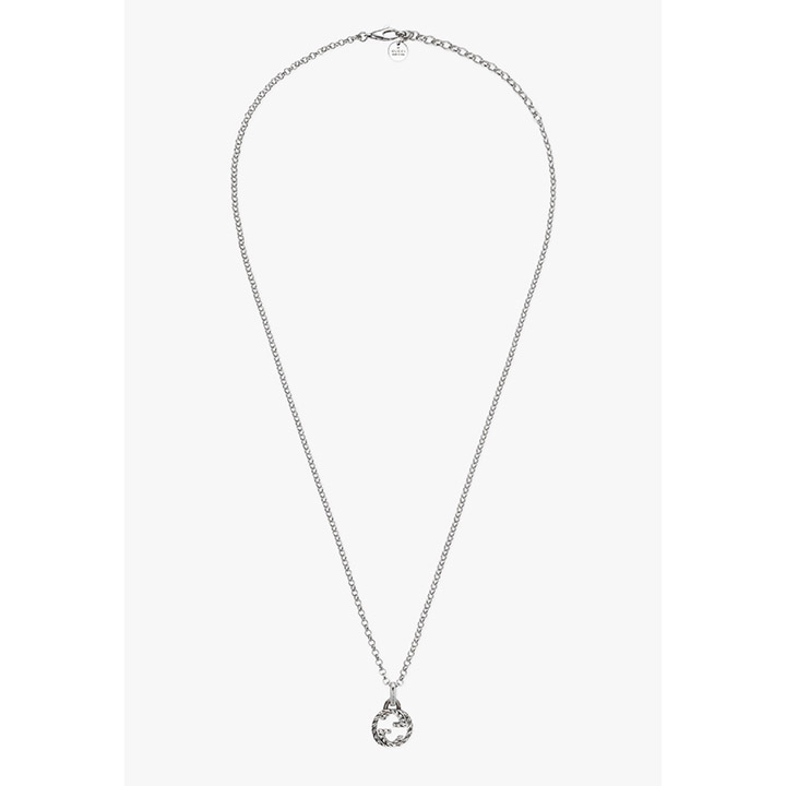 This simple but elegant necklace from Gucci’s Interlocking Collection features the interlocking “G” motif in aged sterling silver on a sterling-silver chain.