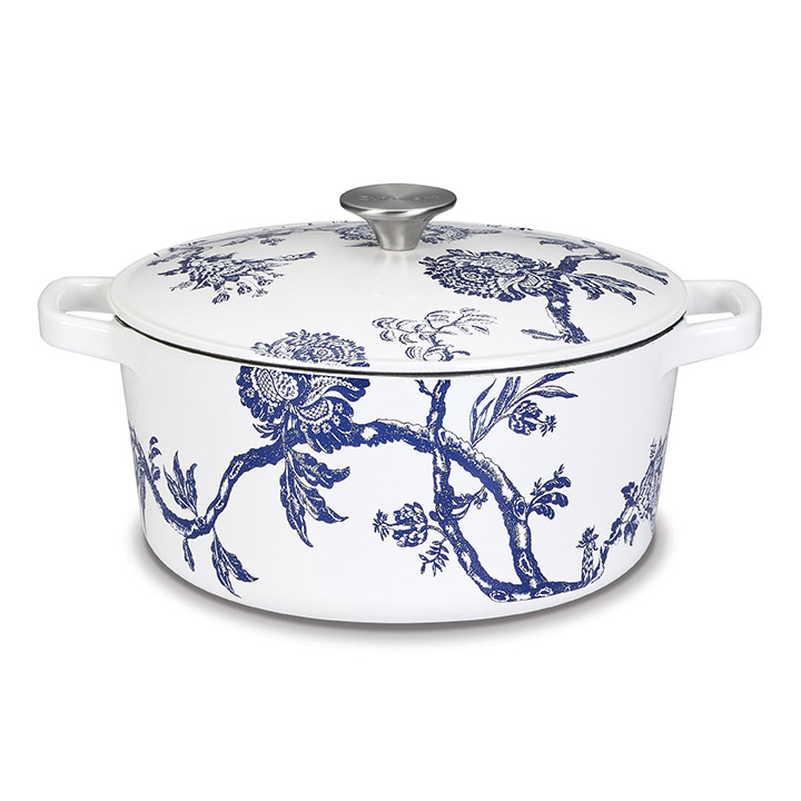 On the stovetop or in the oven, this 5-quart round covered casserole from Cuisinart provides superior heat retention for braising, stewing, simmering, and more. It has a porcelain enamel interior and exterior, is induction-ready ready and is stovetop, oven, broiler, and dishwasher safe. Measures 11.5” x 11.5” x 5.75”.