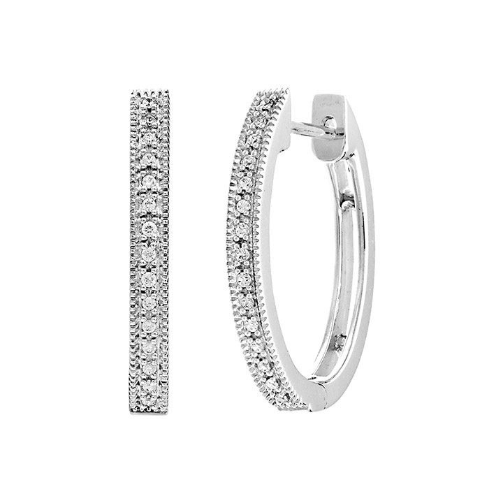 These round diamond hoop earrings from Parikhs sparkle with .10 carats of diamonds, set in polished ...See More