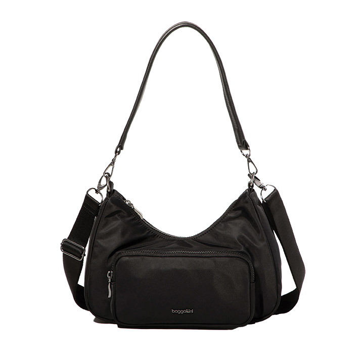 This Savannah crossbody bag from Baggallini has the versatility you need in a go-to style. Wear it as a crossbody or shoulder bag for walking around the block or traveling to new destinations. With the front pockets’ RFID-protected card slots, you’ll have the peace of mind you deserve. It has an 18” removable faux leather shoulder strap, a 52” removable adjustable crossbody strap, an interior pocket for glasses or phone, key leash, and lipstick loop.