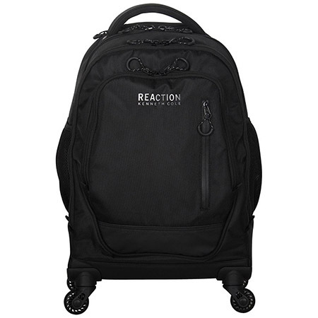 Kenneth Cole Reaction Presents "Roll on Back" 4-Wheel Computer Backpack. The 4-Wheel Spinners allow for easy mobility and 360 degree movement. It holds most laptops with up to a 17.0" screen. This backpack is compatible with most tablets.