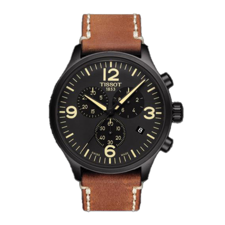 The Tissot Chrono XL is characterized by its big case that has a diameter of 45mm, stainless steel and black PVD coating. The easily readable Arabic numerals at 12, 3, 6, and 9 o'clock and Super-LumiNova hands and hour markers make sure you can always tell the time at a glance.